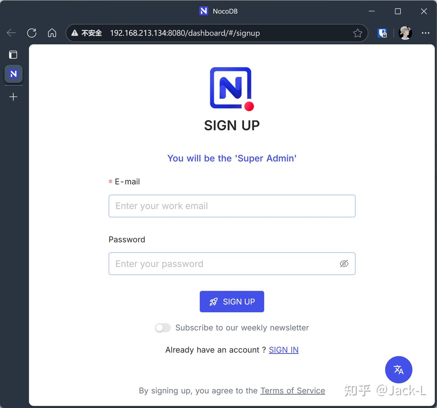 安装成功之后,在容器里我们就能看到Nocodb了,在端口出点击可以跳转Web界面,如果开了开放端口也可以通过IP:端口的方式直接访问。