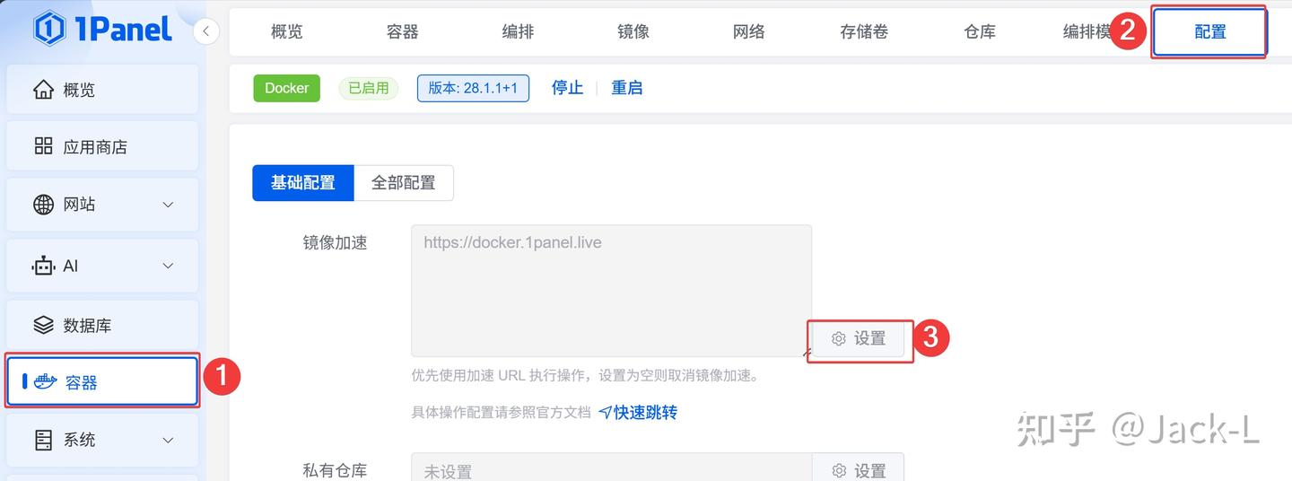 注意:如果你的网络环境无法访问Docker官方仓库,可能会出现镜像拉取失败的错误,你可以配置国内的镜像网站,比如我配置的是