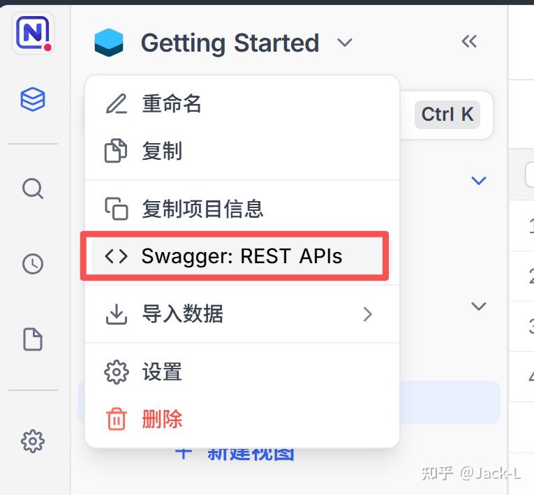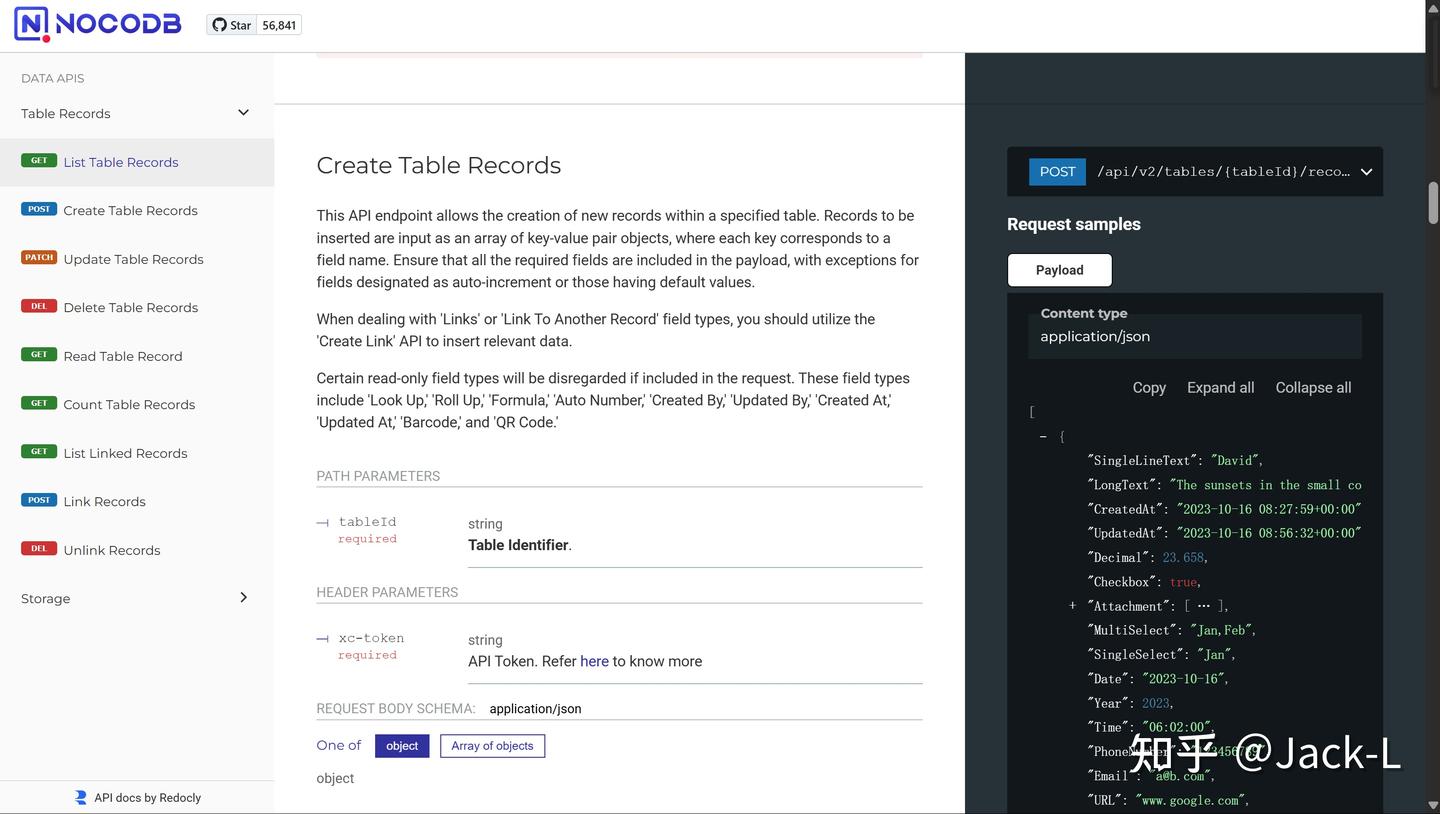 在详细信息里,我们就能看到,Nocodb已经自动为这张表创建了一个API,并给出了一些常见语言的调用示例。
