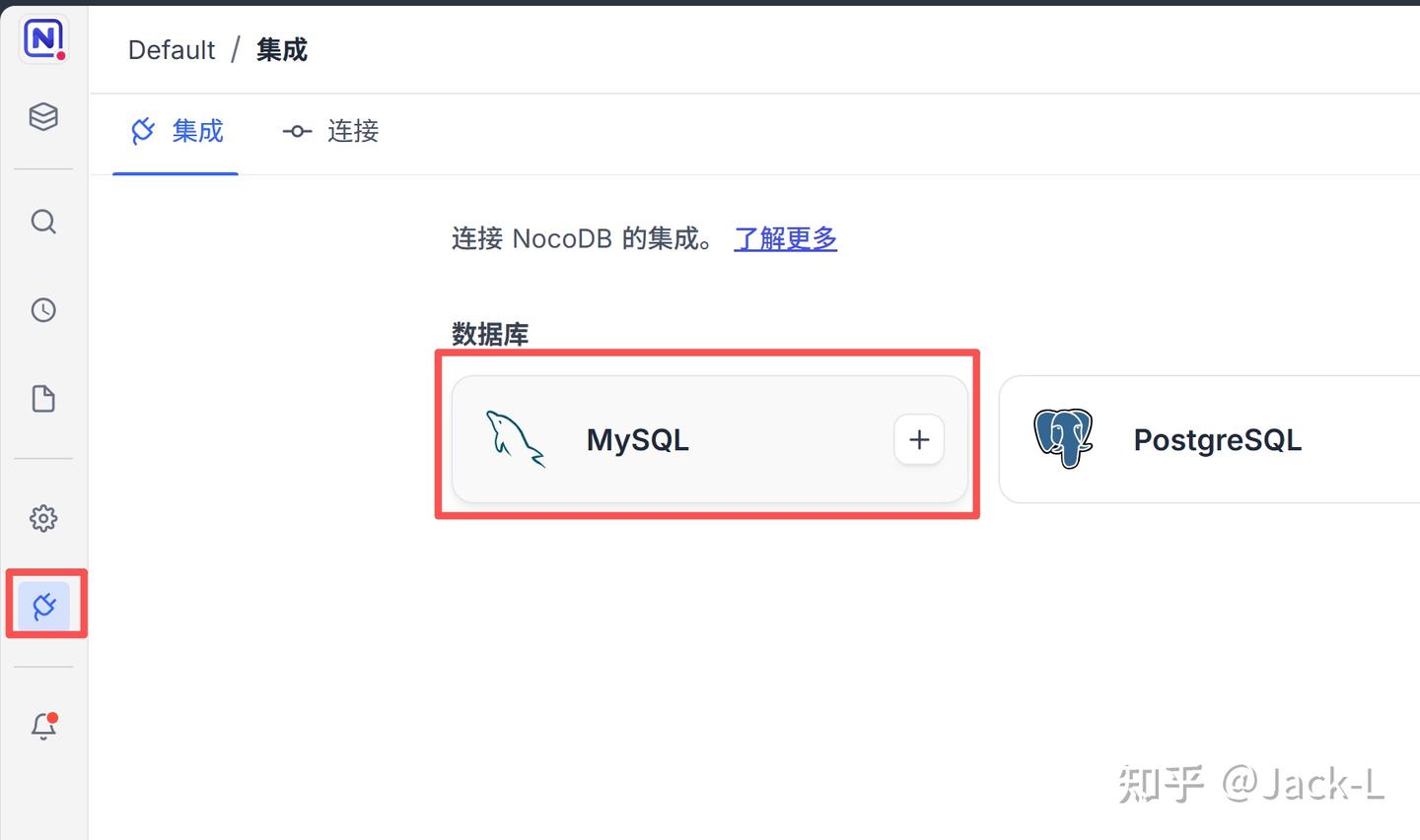 首次访问需要注册一个账号,然后来到集成菜单,在这里配置我们要访问的MySQL数据库。