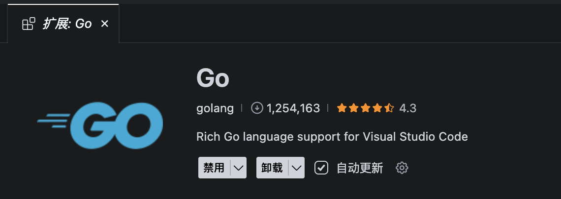 我使用的是VScode,我们可以在插件中心里安装下图的一个插件,它可以提供go语言的一些支持,比如不用输入命令就能运行程序。