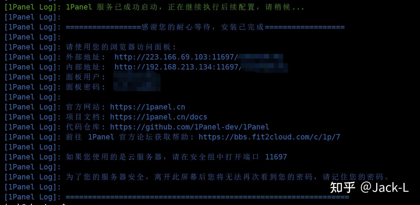 这一步并非必须,熟悉Linux命令行的同学可以跳过这一步,不熟悉的话也可以安装一个管理面板,这里我以1Panel为例,它能提供丰富的图形界面,方便后续的Docker安装和Nocodb安装: